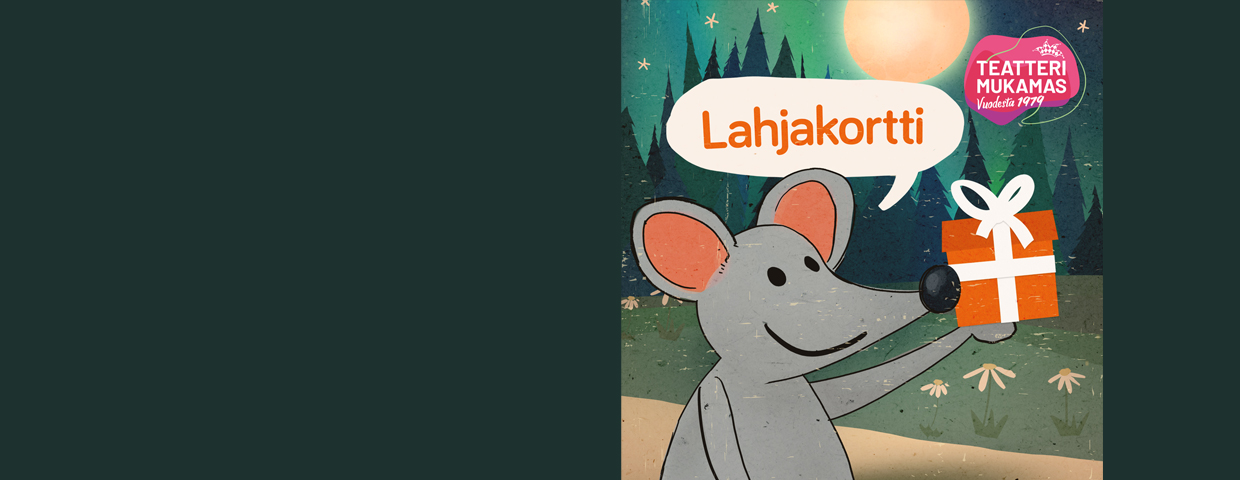 LAHJAKORTTI TEATTERI MUKAMAKSEENIloinen lahjayllätys pikkuystävälle tai koko perheelle. Lahjakortit Teatteri Mukamakseen nyt myös nettikaupasta.